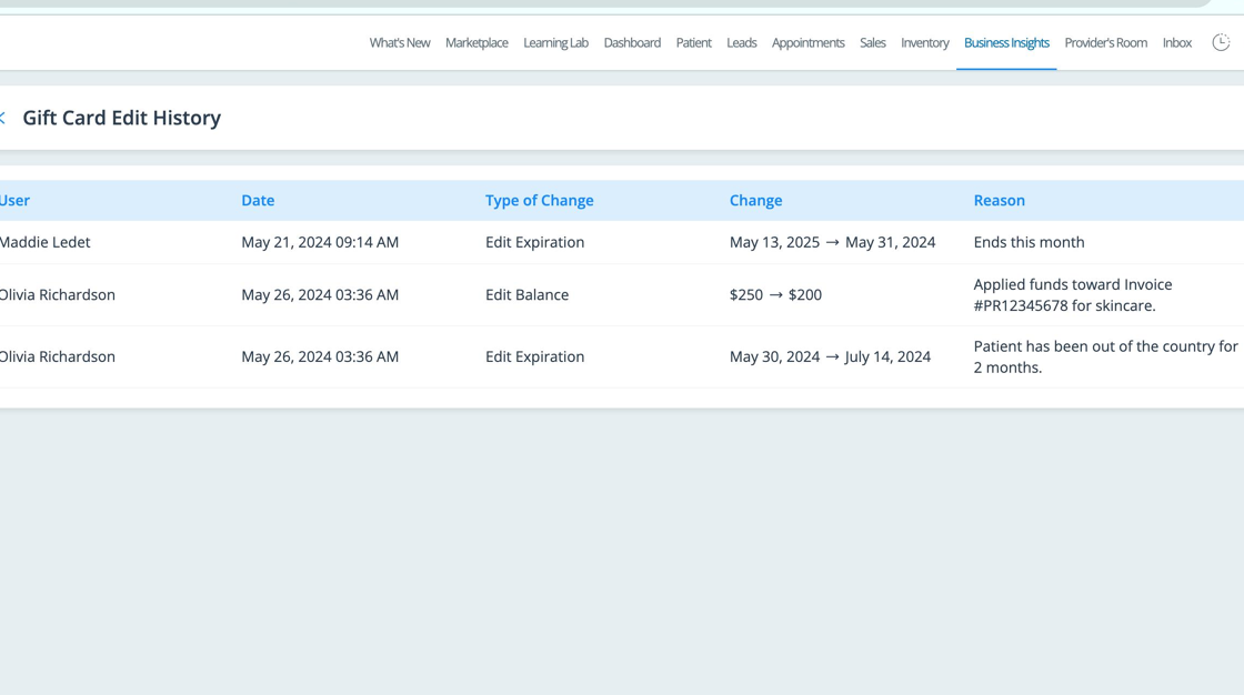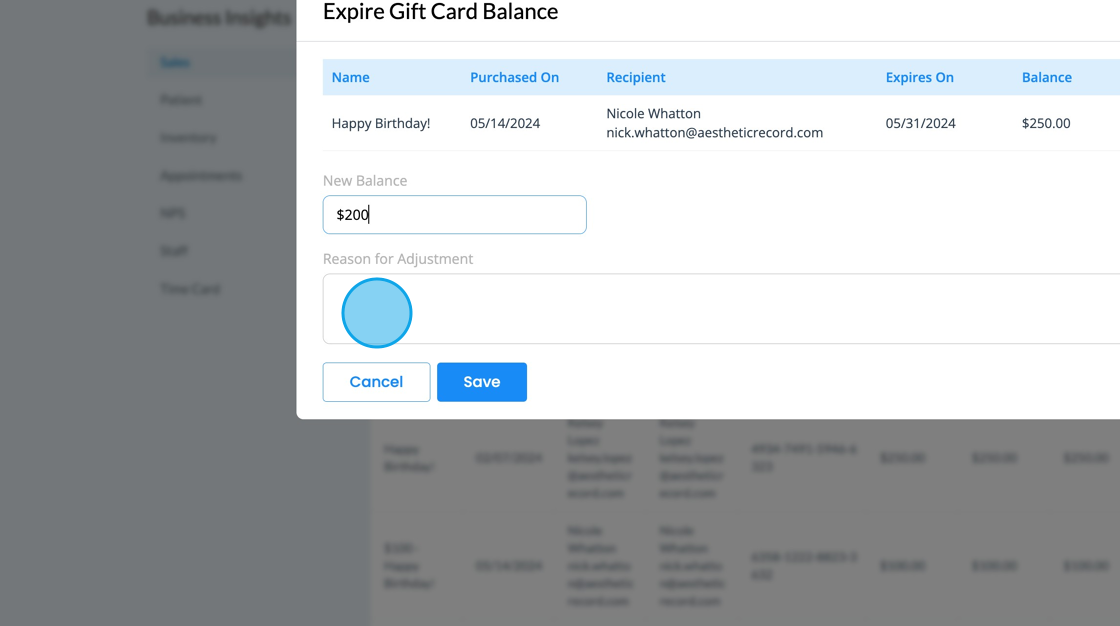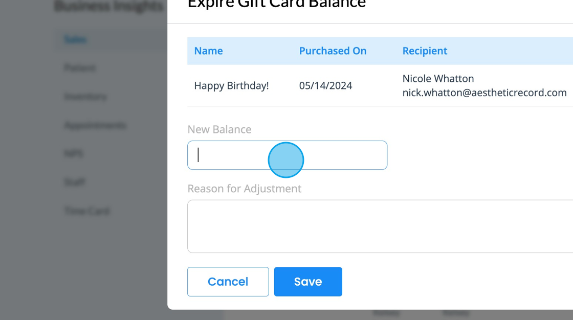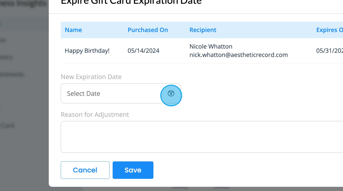 Change an existing eGift card balance when needed or extend/shorten an eGift card's expiration date.